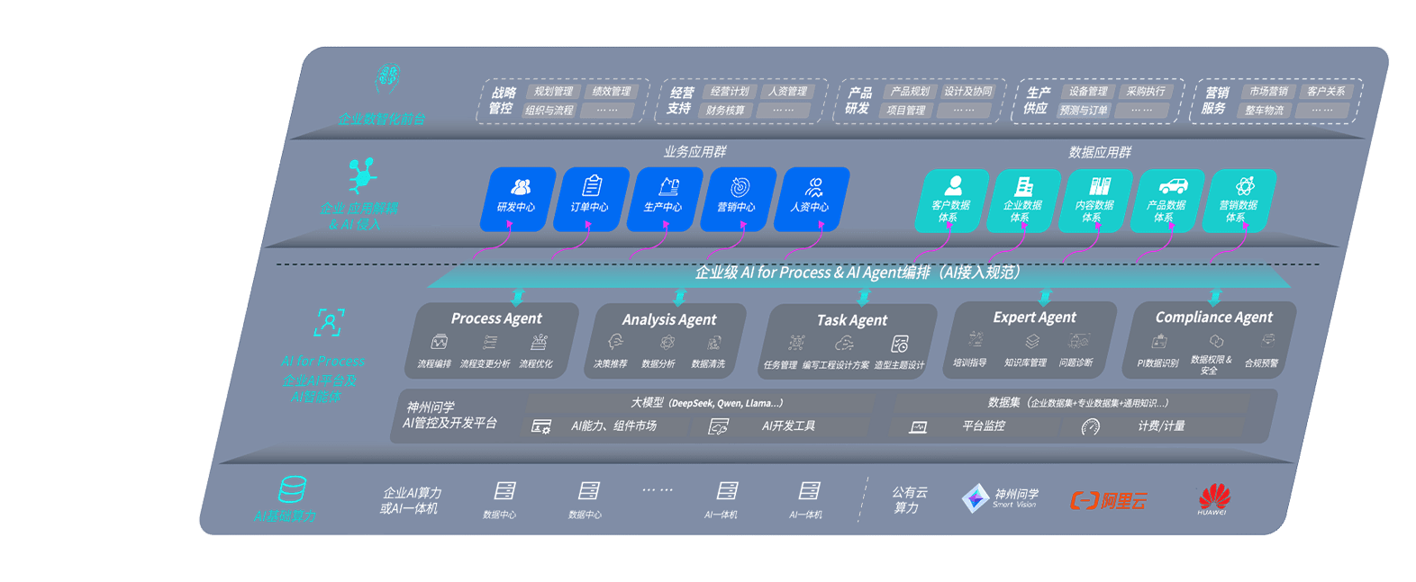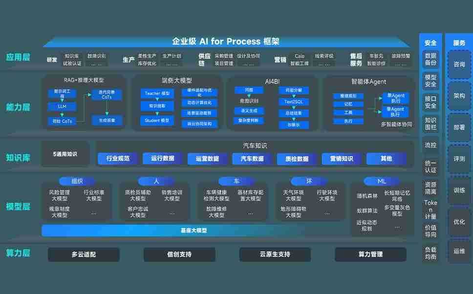 端到端的一站式AI工作空间深度融合了从企业战略规划到日常经营的全流程业务板块,,,定向解决车企内部领域多、、、、部门多、、链条长、、、、场景碎片化等难题,,,,支持车企快速构建以AI为核心的生产力写作体系,,实现任务执行与AI能力的无缝集成与交互